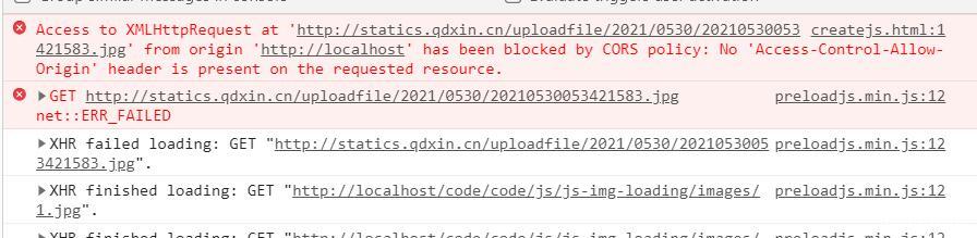 </script>注意:使用preload.js插件,图片数组不能使用如http://www.xxx.com/不是同域名下的图片资源,否则会提示跨域报错。如下图: