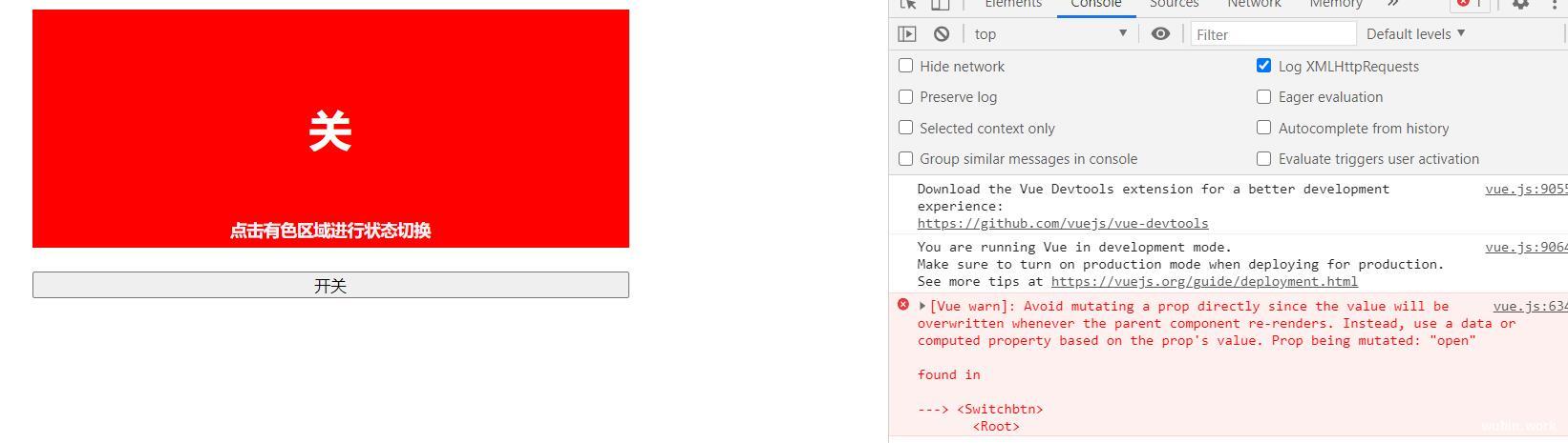 [Vue warn]: Avoid mutating a prop directly since the value will be overwritten whenever the parent component re-renders. Instead, use a data or computed property based on the prop's value. Prop being mutated: "open" found in---> <Switchbtn><Root>